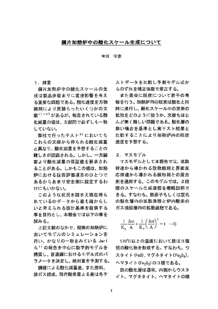 On the Formation of Oxide Scale in a Billet Heating Furnace" (1998)